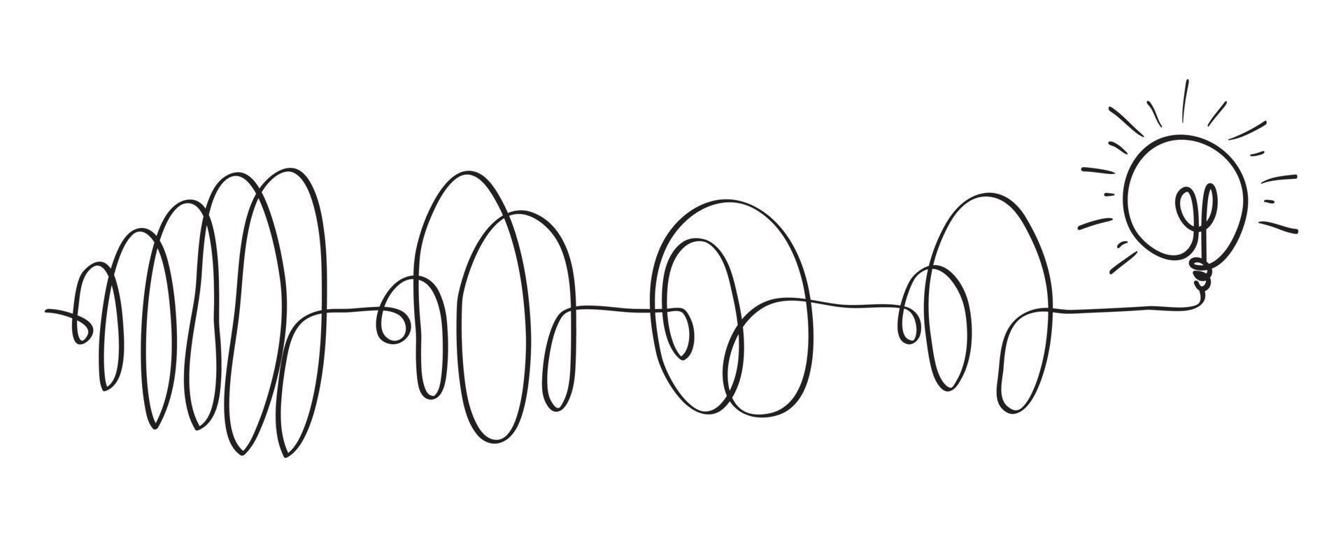 scribble line doodles. the concept of transition from complicated to simple with bulb lamp, isolated on white background. vector illustrations Pro Vector