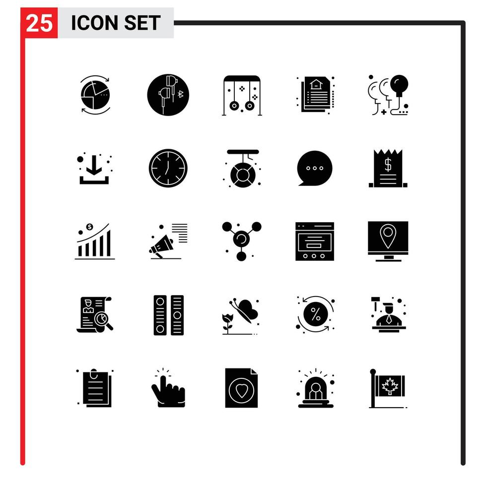25 Universal Solid Glyphs Set for Web and Mobile Applications real document bluetooth swing sport Editable Vector Design Elements