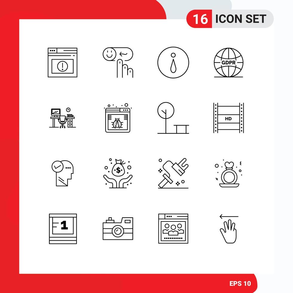 Mobile Interface Outline Set of 16 Pictograms of space network support internet gdpr Editable Vector Design Elements