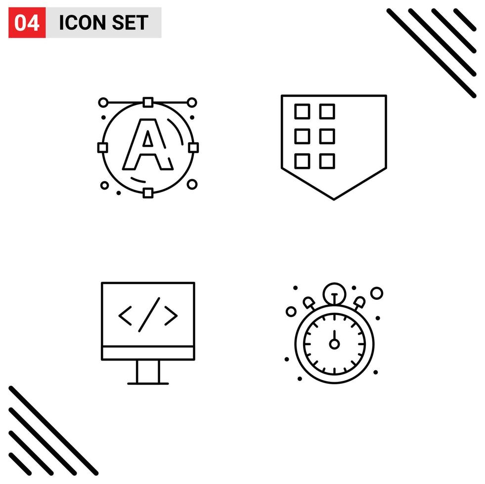 Line Pack of 4 Universal Symbols of font pocket watch protect computer timer Editable Vector Design Elements Free Vector