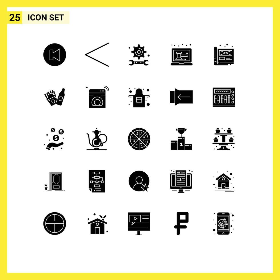 25 Universal Solid Glyphs Set for Web and Mobile Applications document creative engineering art online Editable Vector Design Elements