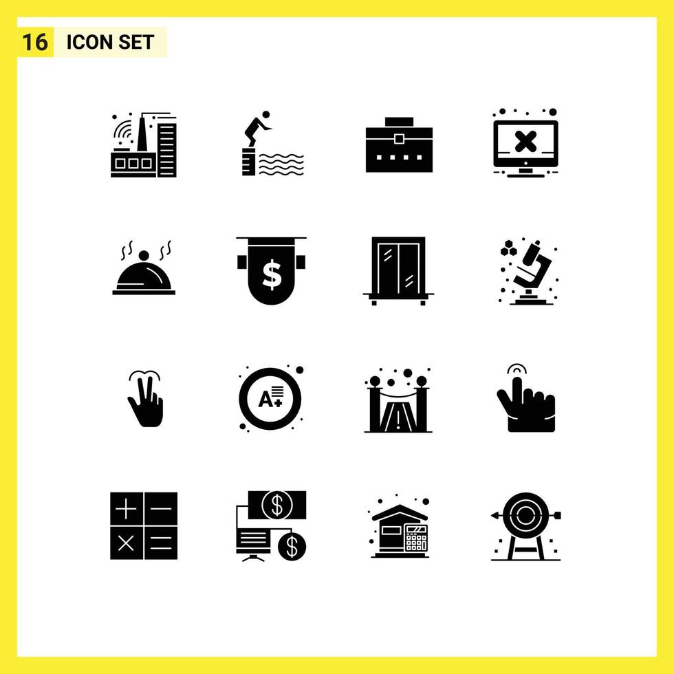 Mobile Interface Solid Glyph Set of 16 Pictograms of dish error bag screen computer Editable Vector Design Elements Free Vector