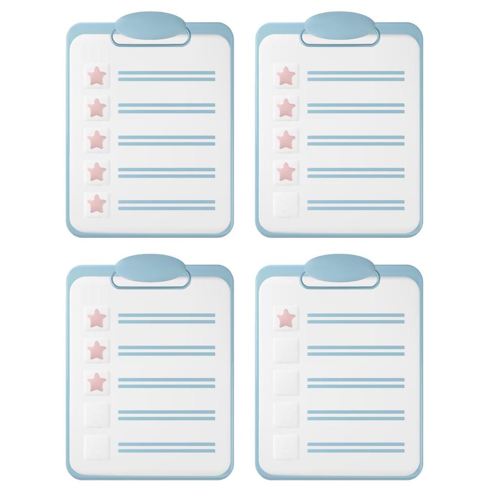 Feedback checklist in a 3d vector. Isolated questionnaire notepad summary. Business survey icon to fill with stars choice Pro Vector