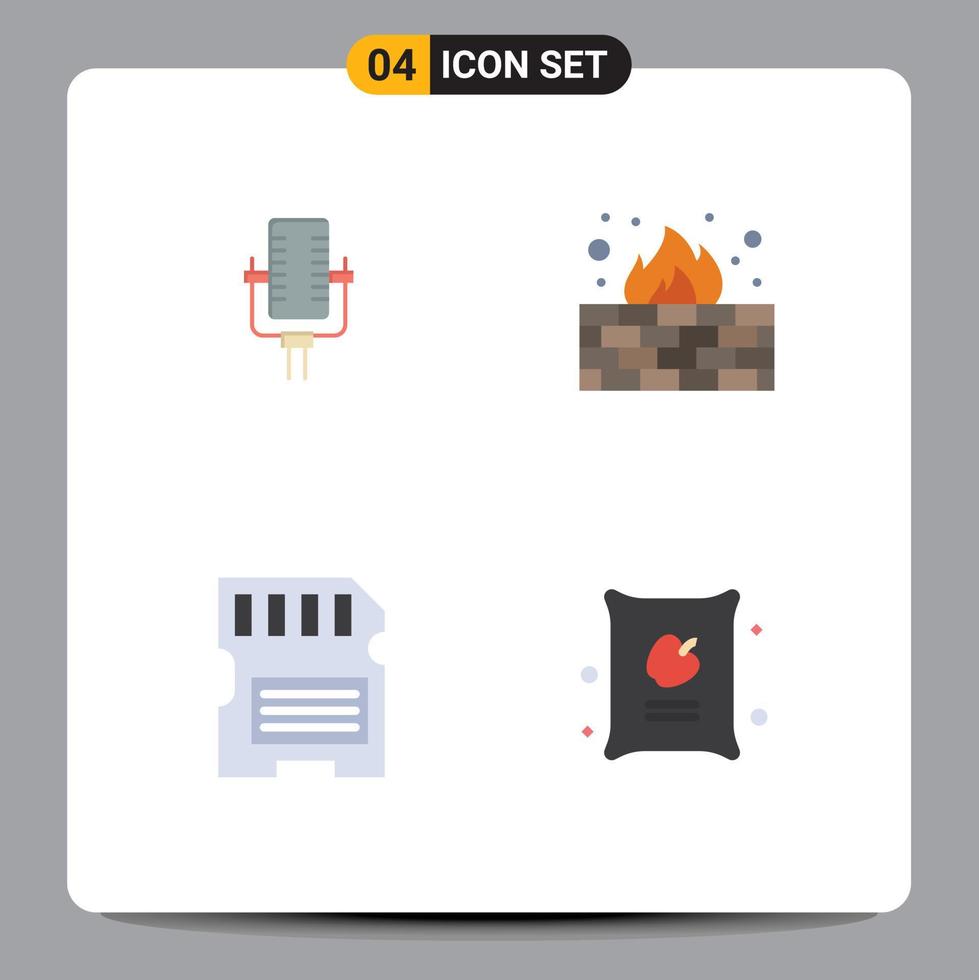 4 User Interface Flat Icon Pack of modern Signs and Symbols of microphone hardware song internet sd Editable Vector Design Elements Free Vector and Free SVG