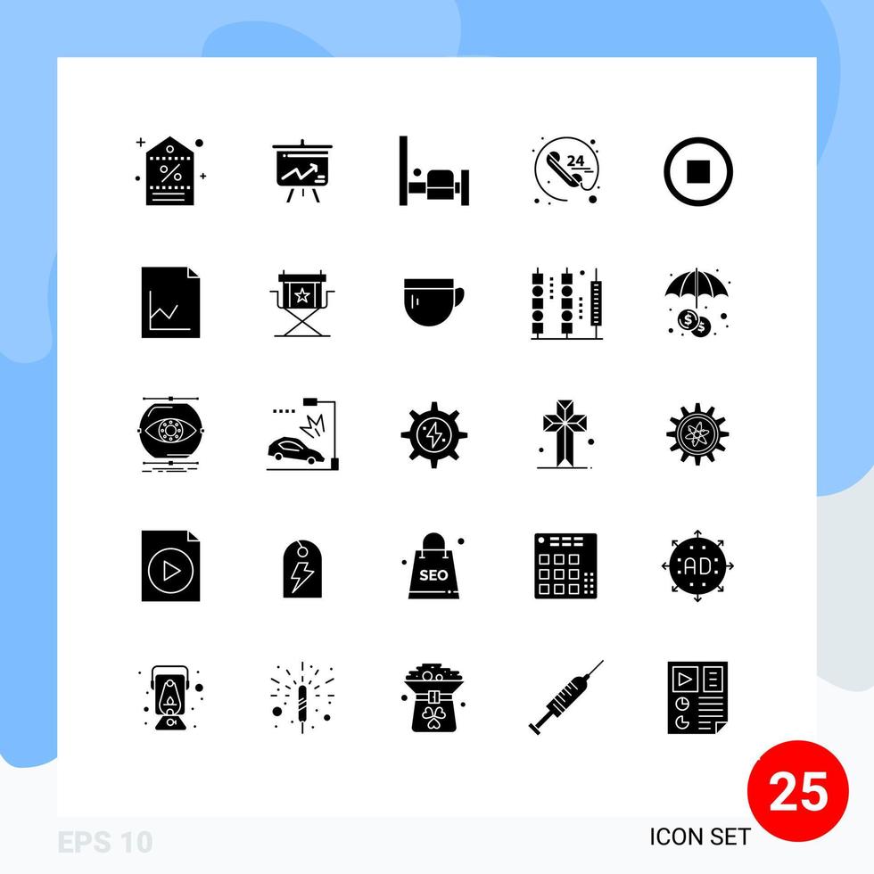 Pictogram Set of 25 Simple Solid Glyphs of interface service board communication anytime Editable Vector Design Elements