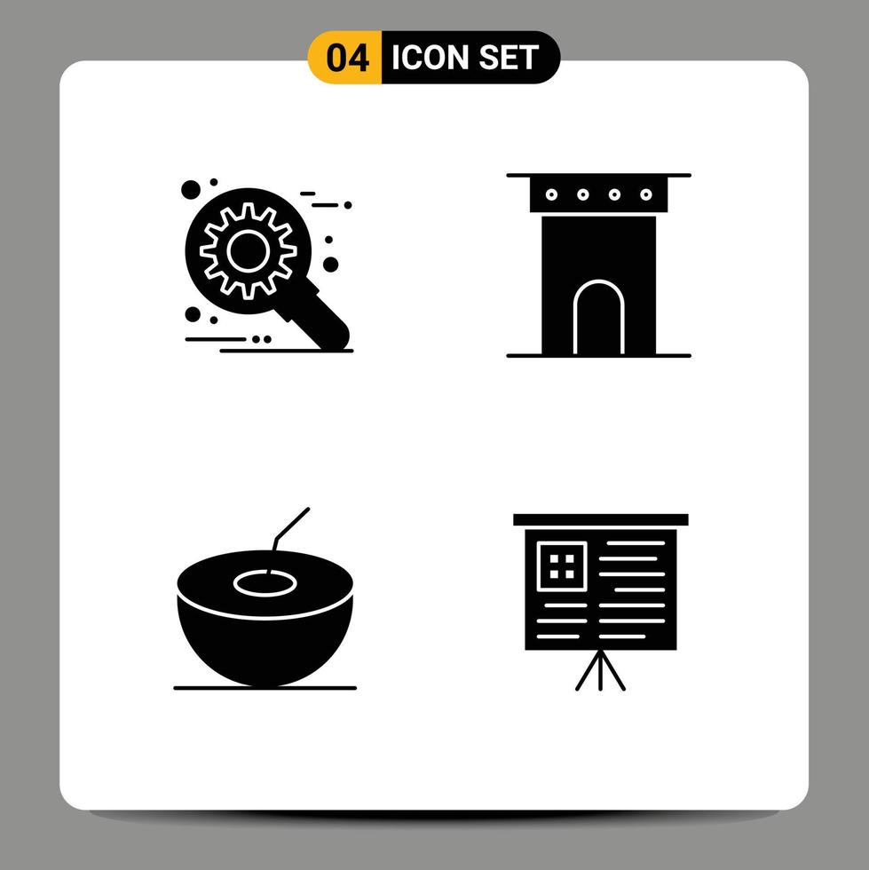 4 User Interface Solid Glyph Pack of modern Signs and Symbols of customize coconut setting column board Editable Vector Design Elements