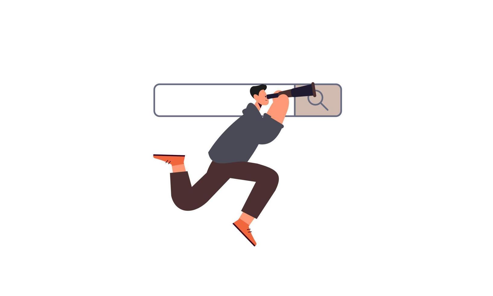 Search bars and people browsing online information, surfing internet. Characters look for and find query in web browser Pro Vector
