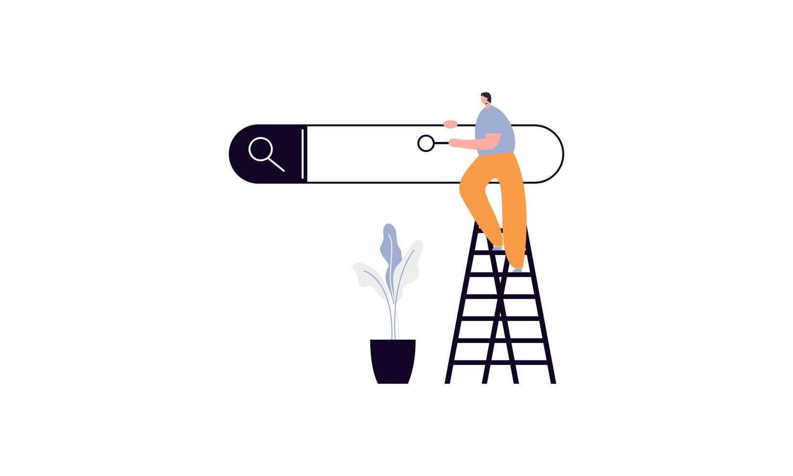 Search bars and people browsing online information, surfing internet. Characters look for and find query in web browser Pro Vector
