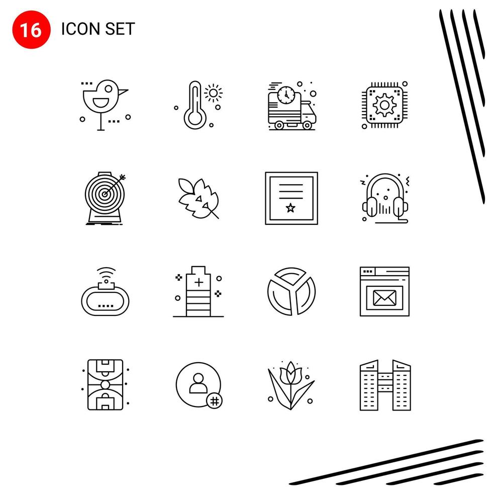 Pictogram Set of 16 Simple Outlines of goal aim delivery web setting Editable Vector Design Elements