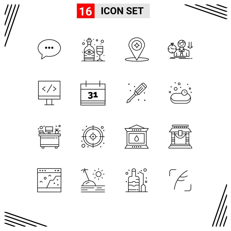 Universal Icon Symbols Group of 16 Modern Outlines of computer depression map sad failure Editable Vector Design Elements