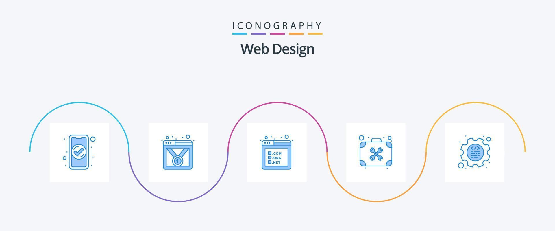 Web Design Blue 5 Icon Pack Including coding. tools. web page. tool. case vector