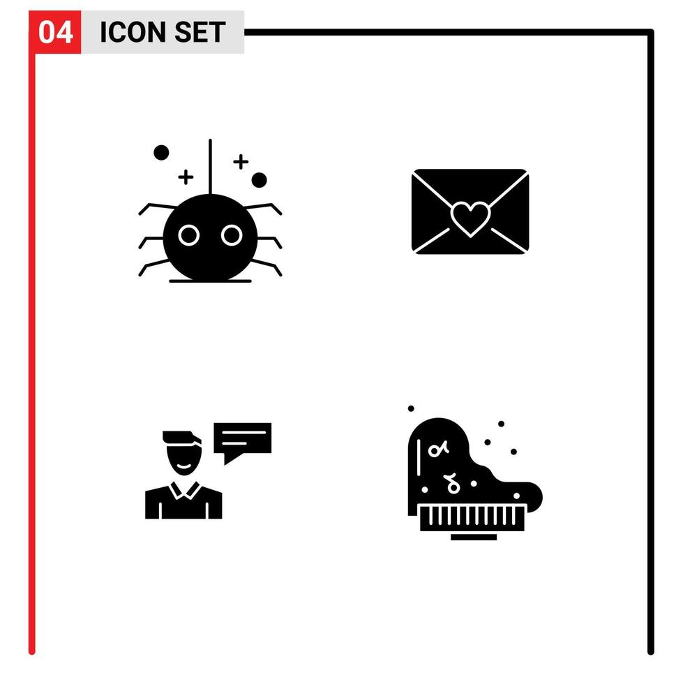 Pack of 4 Modern Solid Glyphs Signs and Symbols for Web Print Media such as bug popup spider heart conversation Editable Vector Design Elements