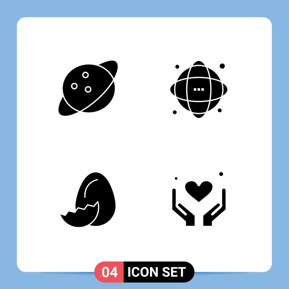 Editable Vector Line Pack of 4 Simple Solid Glyphs of planet easter data network spring Editable Vector Design Elements