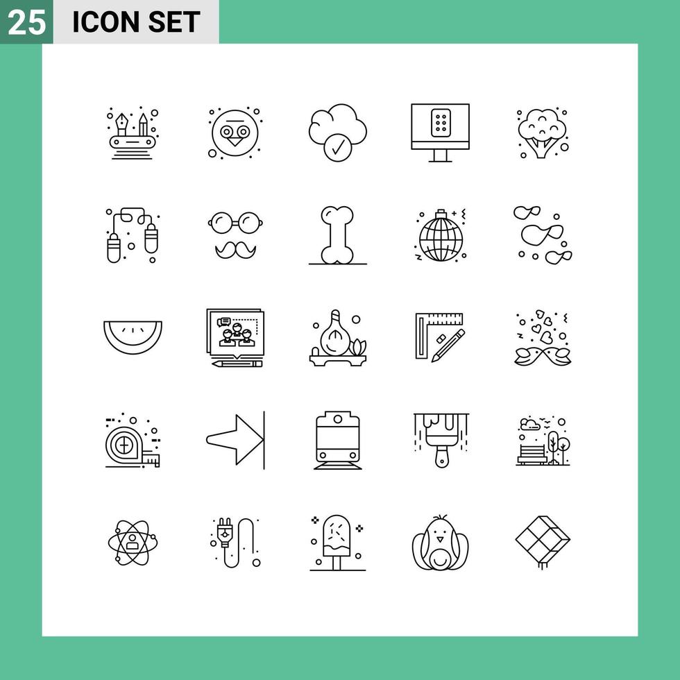 25 User Interface Line Pack of modern Signs and Symbols of jump rope exercise data vegetables broccoli Editable Vector Design Elements