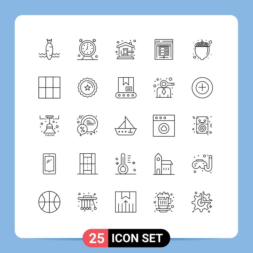 Pictogram Set of 25 Simple Lines of data storage data center timer computer server home Editable Vector Design Elements