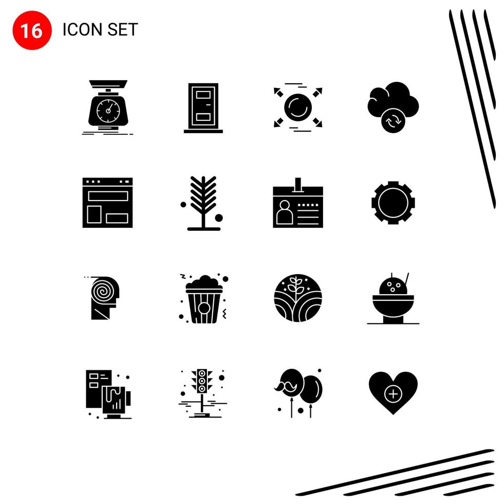 Group of 16 Modern Solid Glyphs Set for web layout blog layout circle sync cloud Editable Vector Design Elements