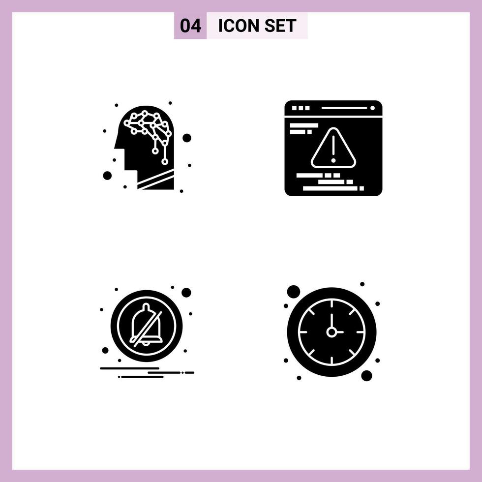 Pictogram Set of 4 Simple Solid Glyphs of artificial clock development alarm watch Editable Vector Design Elements