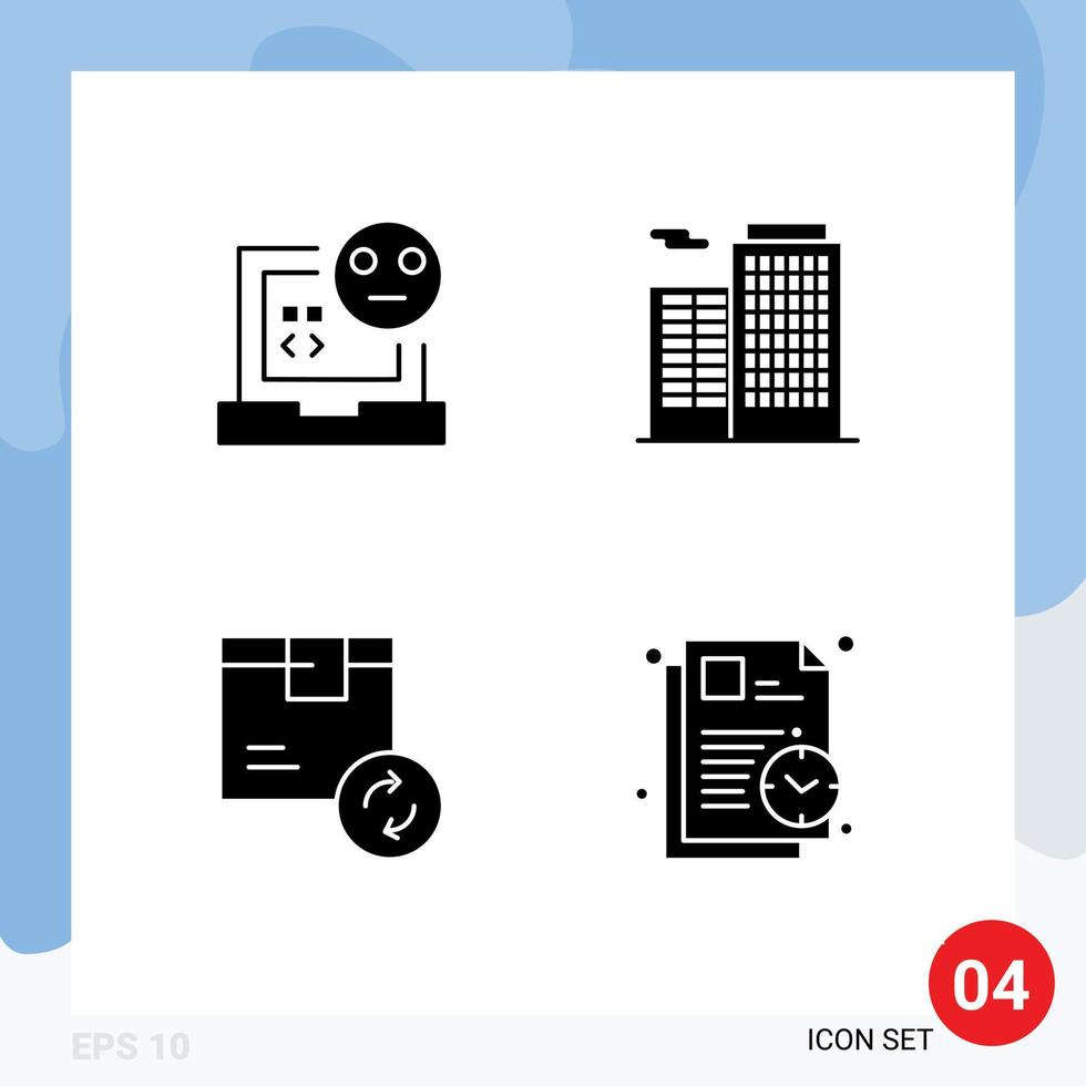 Pack of 4 Modern Solid Glyphs Signs and Symbols for Web Print Media such as bad delivery development building service Editable Vector Design Elements