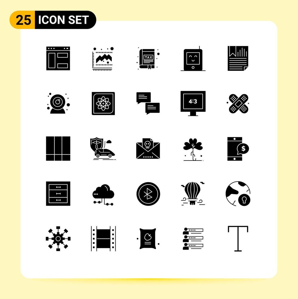 Mobile Interface Solid Glyph Set of 25 Pictograms of data radio app monitor tax Editable Vector Design Elements