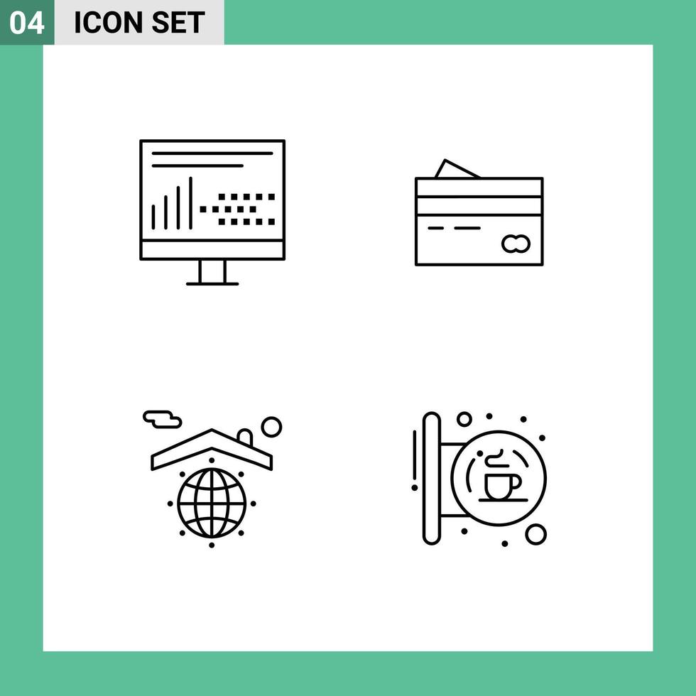 4 Universal Line Signs Symbols of coding credit programing banking money Editable Vector Design Elements