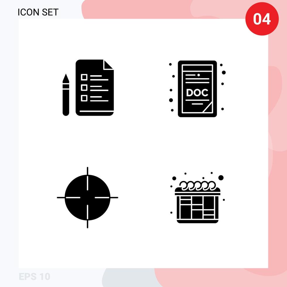 4 Solid Glyph concept for Websites Mobile and Apps file symbolism pencil doc file iteration Editable Vector Design Elements