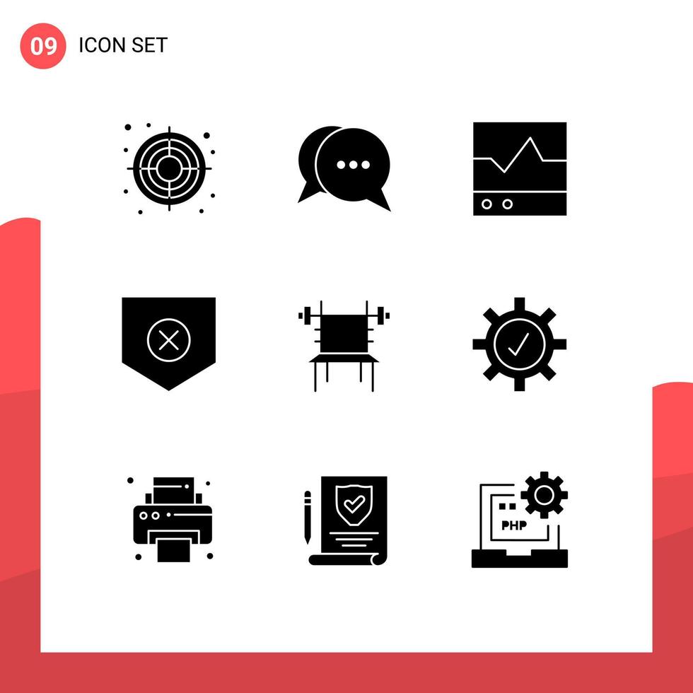 Pictogram Set of 9 Simple Solid Glyphs of dumbbell x ecg shield protect Editable Vector Design Elements Free Vector