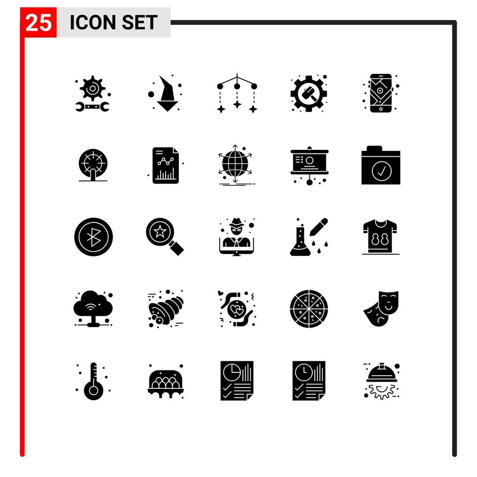 Editable Vector Line Pack of 25 Simple Solid Glyphs of navigation gps baby settings hammer Editable Vector Design Elements