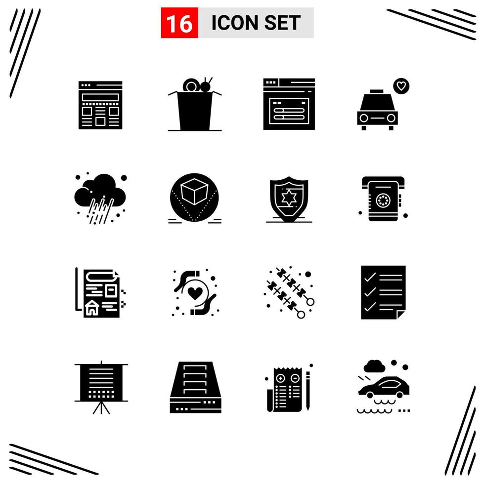 16 Icons Solid Style Grid Based Creative Glyph Symbols for Website Design Simple Solid Icon Signs Isolated on White Background 16 Icon Set Creative Black Icon vector background