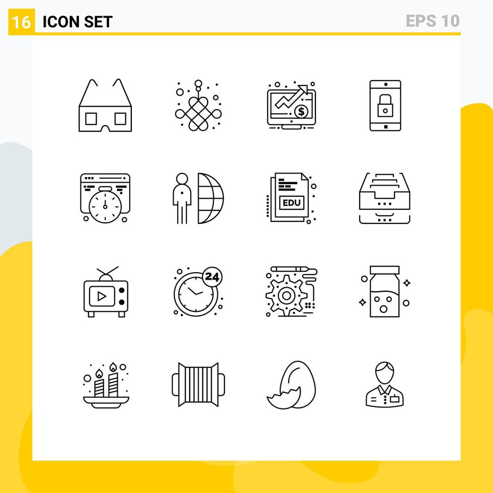 Mobile Interface Outline Set of 16 Pictograms of web mobile application money mobile lock Editable Vector Design Elements