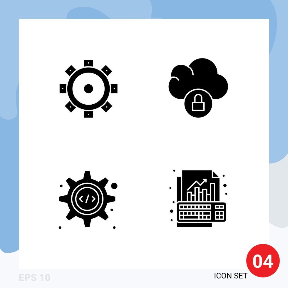 User Interface Pack of 4 Basic Solid Glyphs of construction gear cloud html data Editable Vector Design Elements