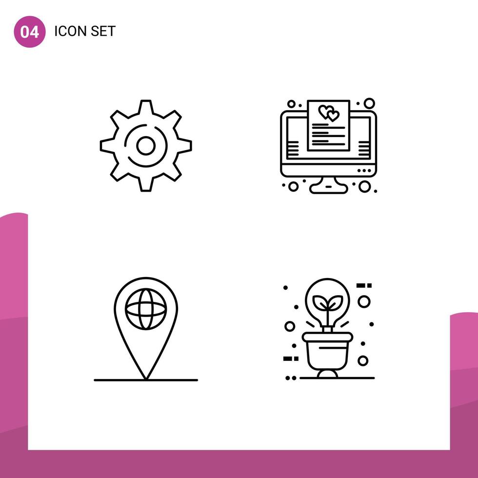 Mobile Interface Line Set of 4 Pictograms of internet location wish list online bulb Editable Vector Design Elements Free Vector
