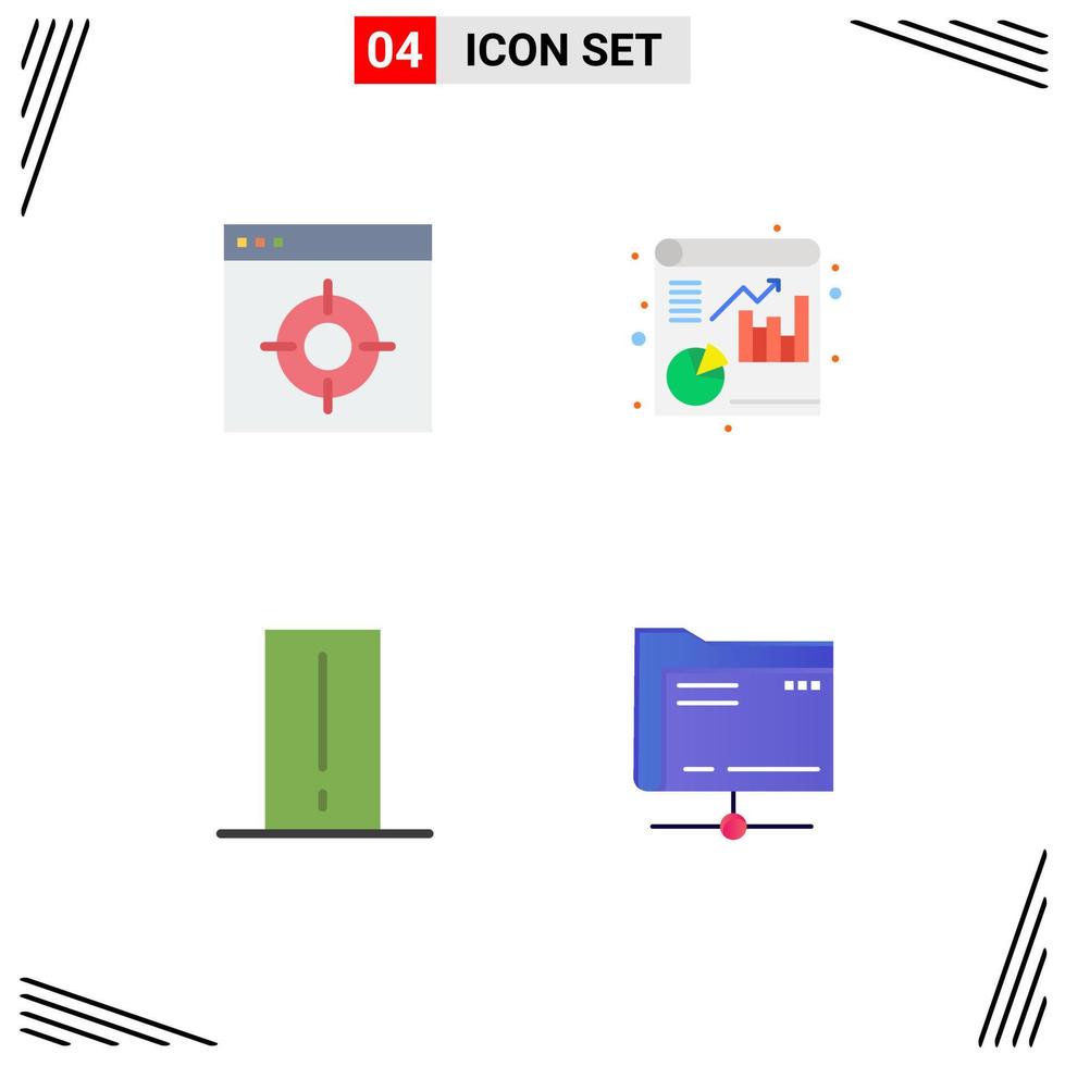 Set of 4 Vector Flat Icons on Grid for application electronics target report light mete Editable Vector Design Elements