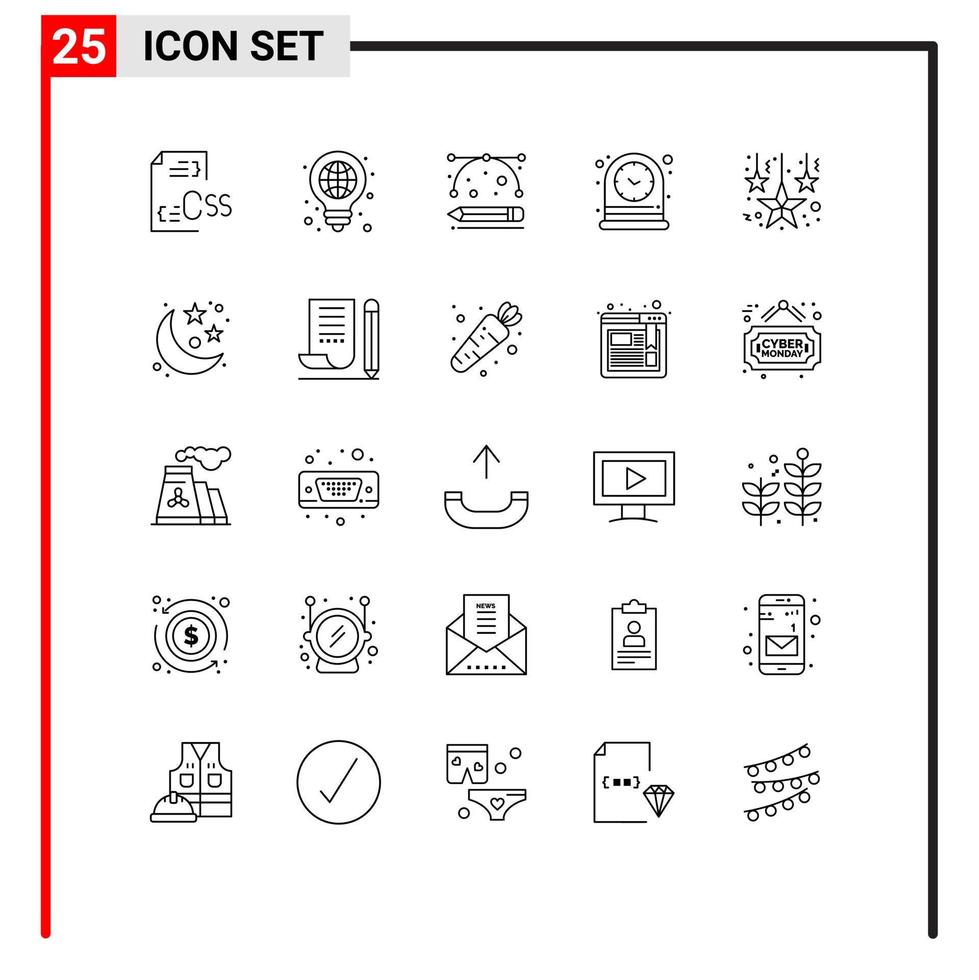 25 Universal Lines Set for Web and Mobile Applications watch table light clock development tools Editable Vector Design Elements