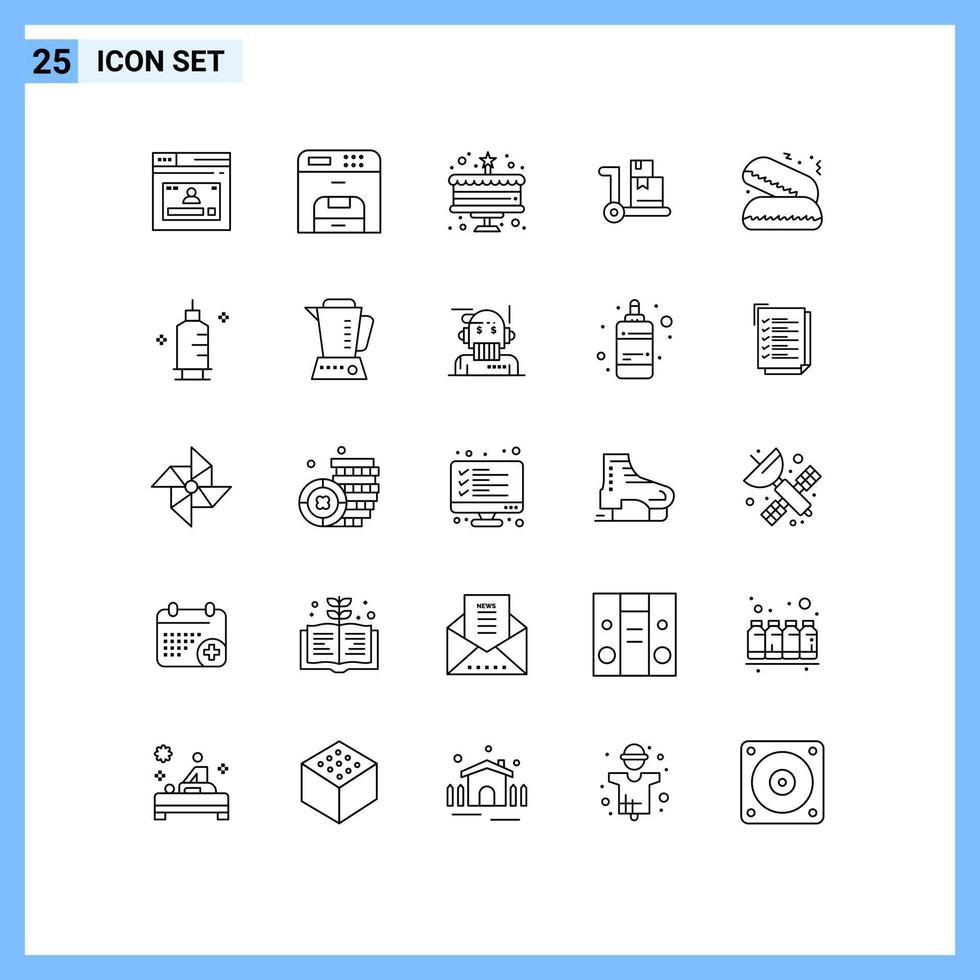 25 Universal Lines Set for Web and Mobile Applications pie fast food printer shopping cart Editable Vector Design Elements