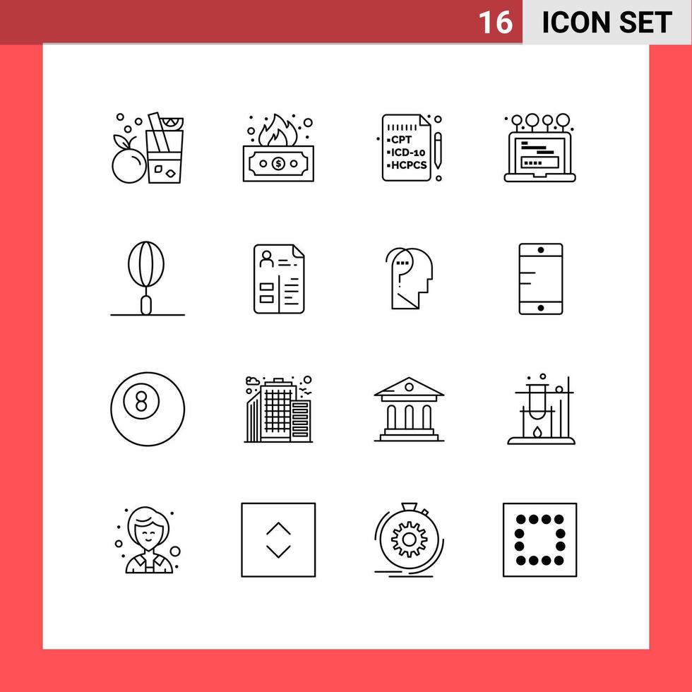 16 Universal Outlines Set for Web and Mobile Applications food drink health computer laptop Editable Vector Design Elements