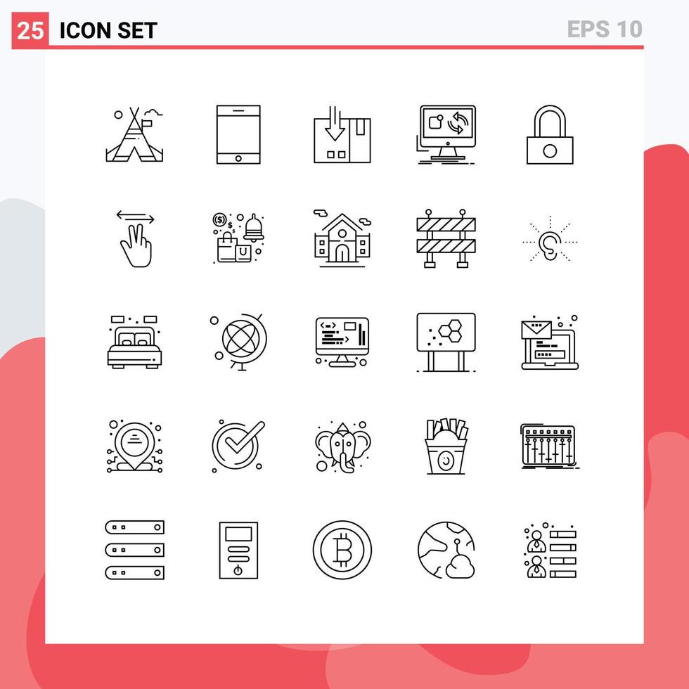 Pack of 25 Modern Lines Signs and Symbols for Web Print Media such as lock install delivery application update Editable Vector Design Elements