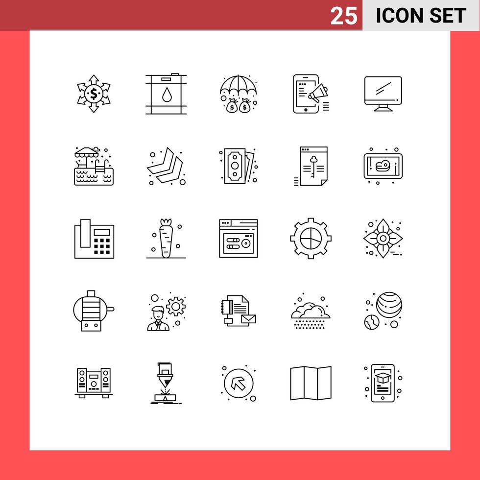 Set of 25 Modern UI Icons Symbols Signs for device computer umbrella mobile advertising media Editable Vector Design Elements Free Vector