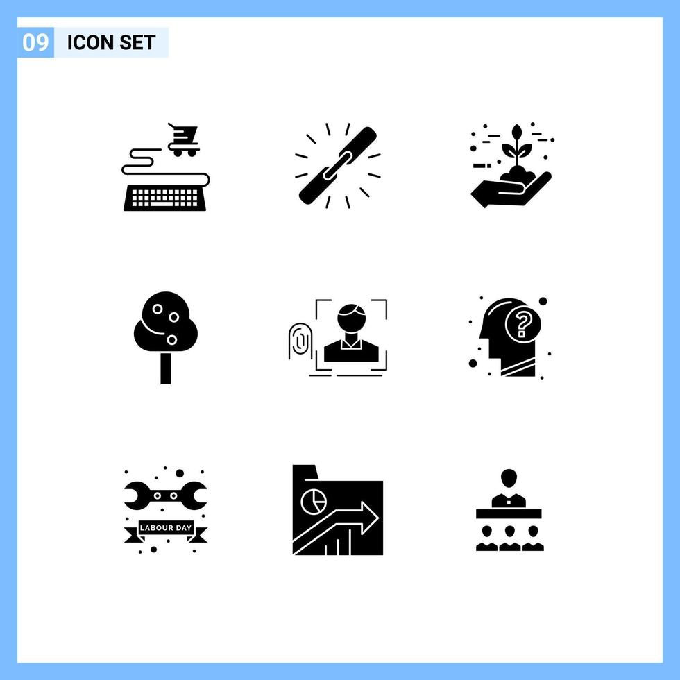 9 Universal Solid Glyphs Set for Web and Mobile Applications fingerprint tree protection summer grow Editable Vector Design Elements Free Vector