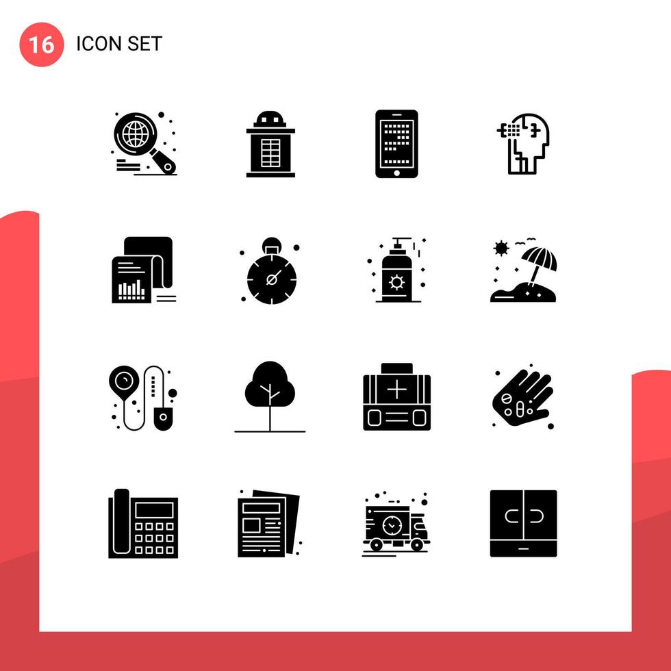 Mobile Interface Solid Glyph Set of 16 Pictograms of list data cell checklist man Editable Vector Design Elements