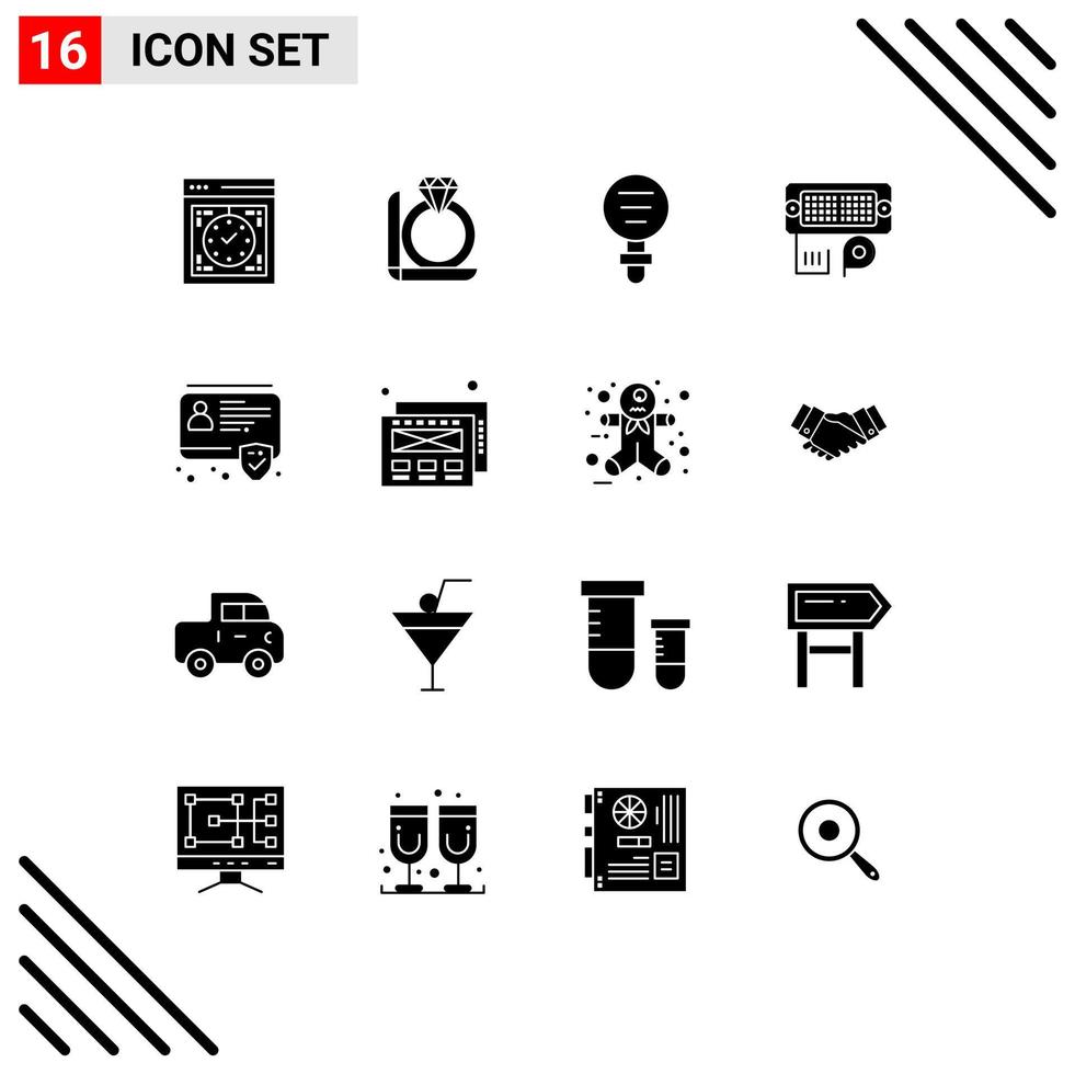 Universal Icon Symbols Group of 16 Modern Solid Glyphs of input connection box adapter laboratory Editable Vector Design Elements