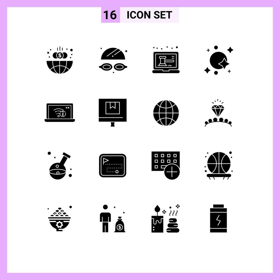 Mobile Interface Solid Glyph Set of 16 Pictograms of error spaceship laptop space galaxy Editable Vector Design Elements Free Vector