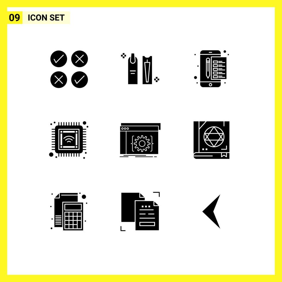 Set of 9 Modern UI Icons Symbols Signs for smart computer makeup chip stamp Editable Vector Design Elements