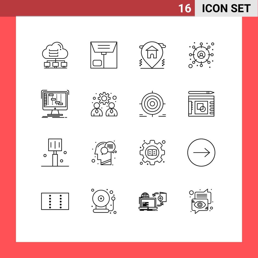 16 User Interface Outline Pack of modern Signs and Symbols of daw ableton location user customer Editable Vector Design Elements
