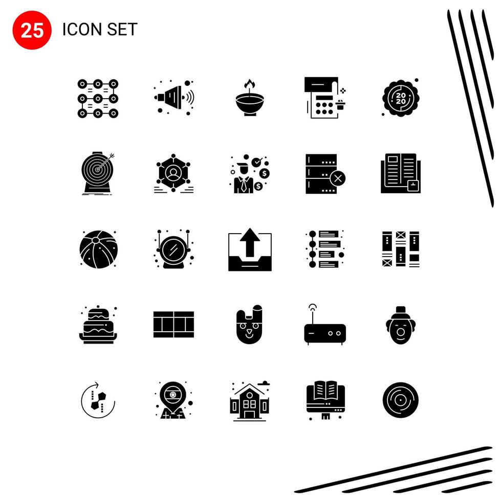 Set of 25 Vector Solid Glyphs on Grid for party date deepam calendar lamp Editable Vector Design Elements Free Vector