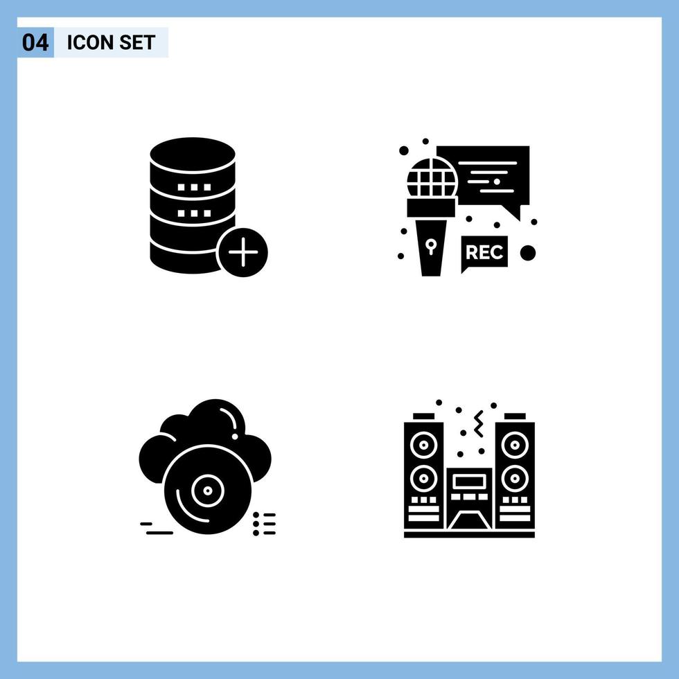 User Interface Pack of 4 Basic Solid Glyphs of database cd storage microphone archive Editable Vector Design Elements Free Vector