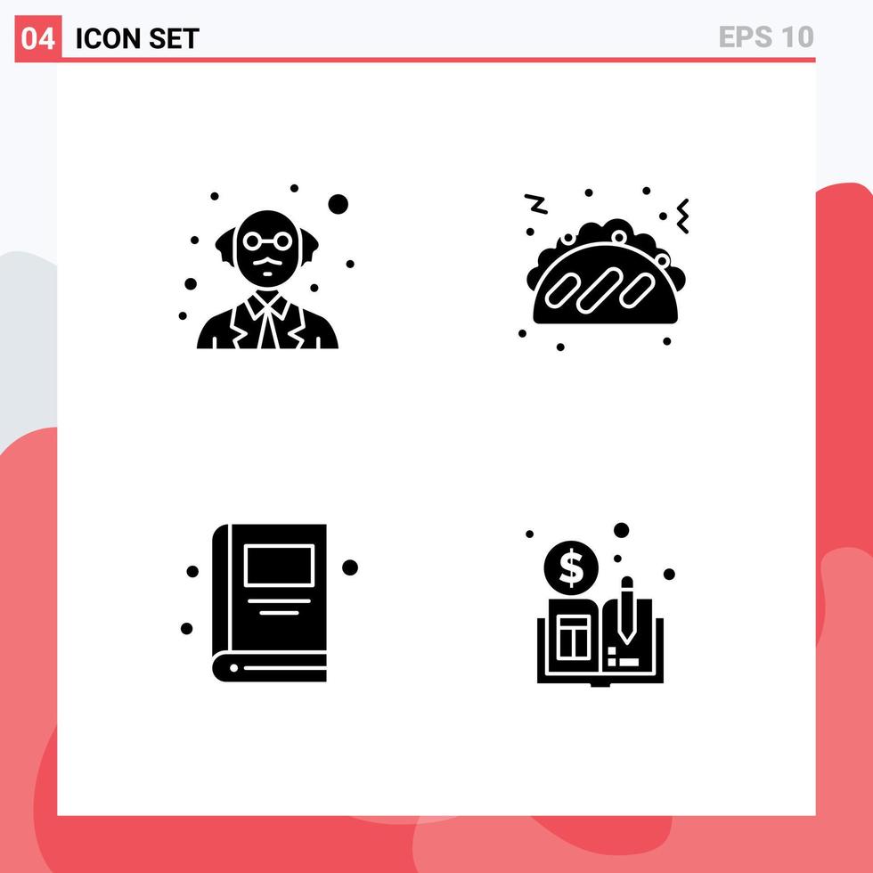 4 Solid Glyph concept for Websites Mobile and Apps person cryptocurrency taco book distributed ledger book Editable Vector Design Elements