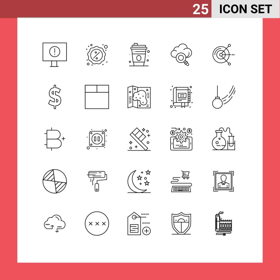 Group of 25 Lines Signs and Symbols for hard drive disk computing glass computer research Editable Vector Design Elements
