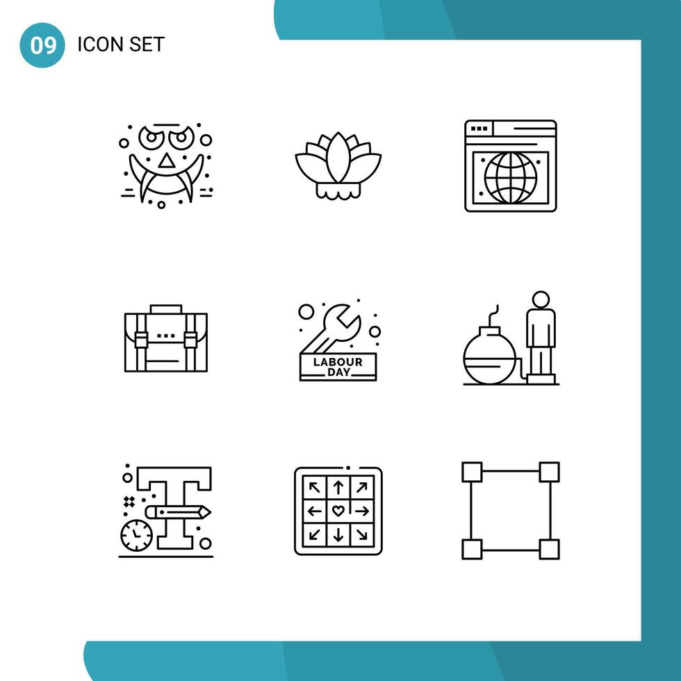 Pack of 9 Modern Outlines Signs and Symbols for Web Print Media such as day portfolio web marketing case Editable Vector Design Elements
