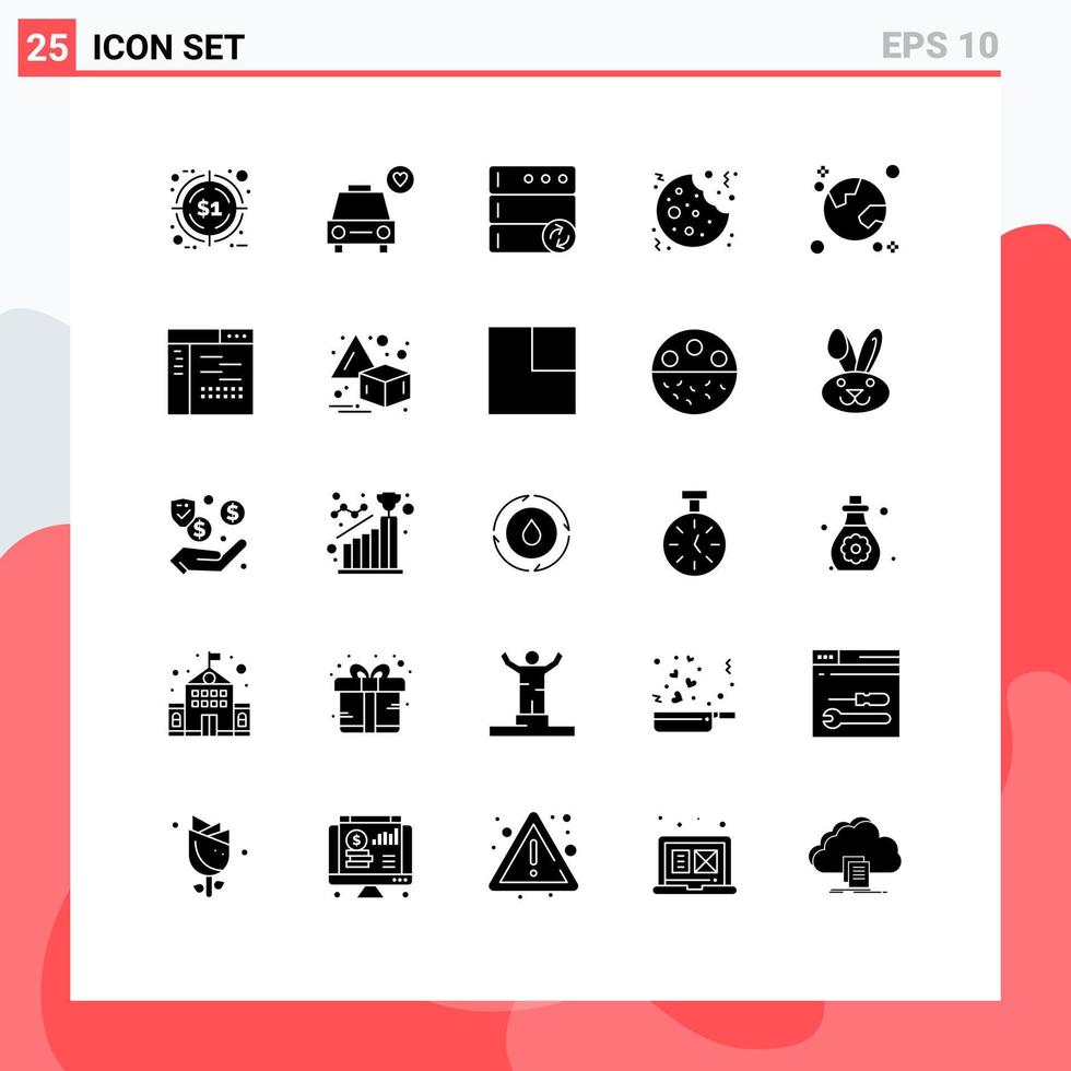 25 Universal Solid Glyphs Set for Web and Mobile Applications globe earth server browser dessert Editable Vector Design Elements