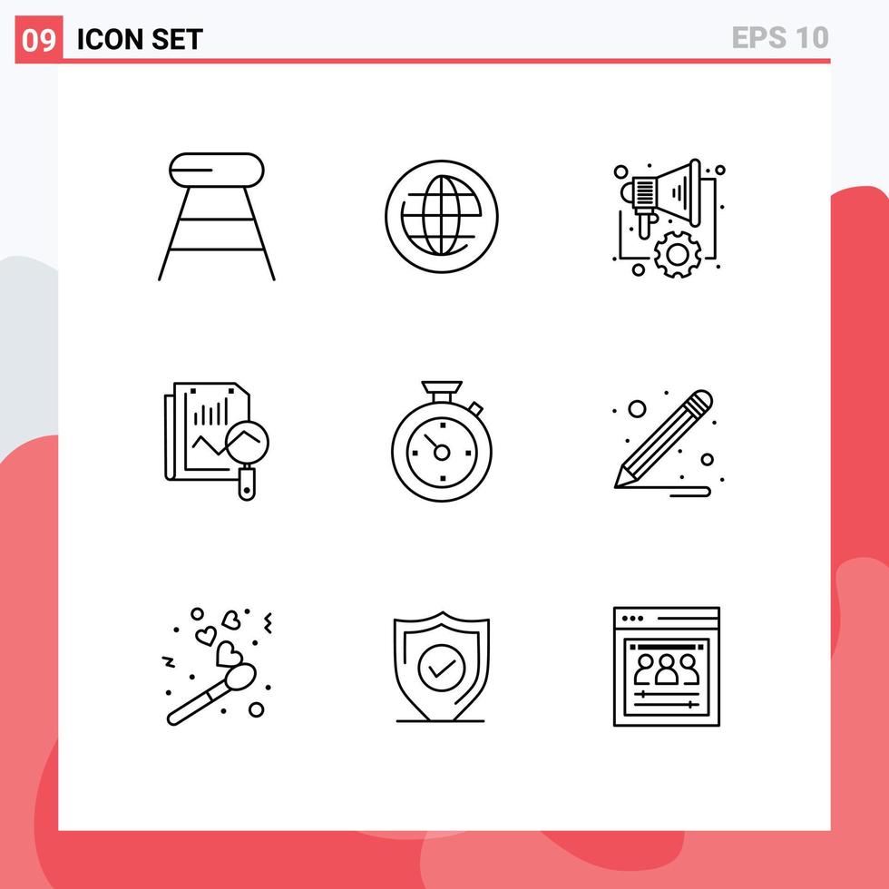 Modern Set of 9 Outlines and symbols such as timer computing automation search file Editable Vector Design Elements
